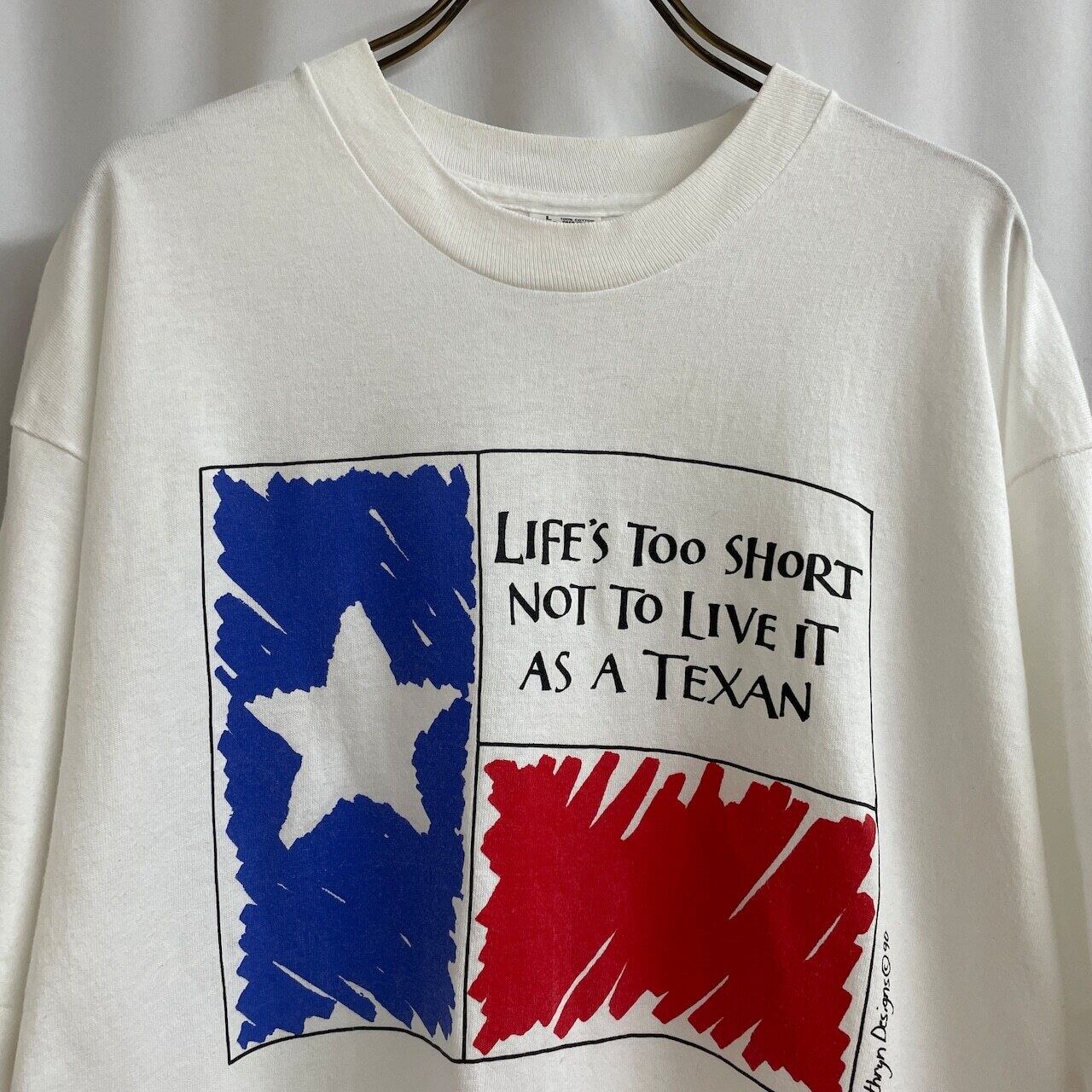 そんな力強いメッセージとともに、テキサス州旗をポップにアレンジした90年代のグラフィックTシャツです。