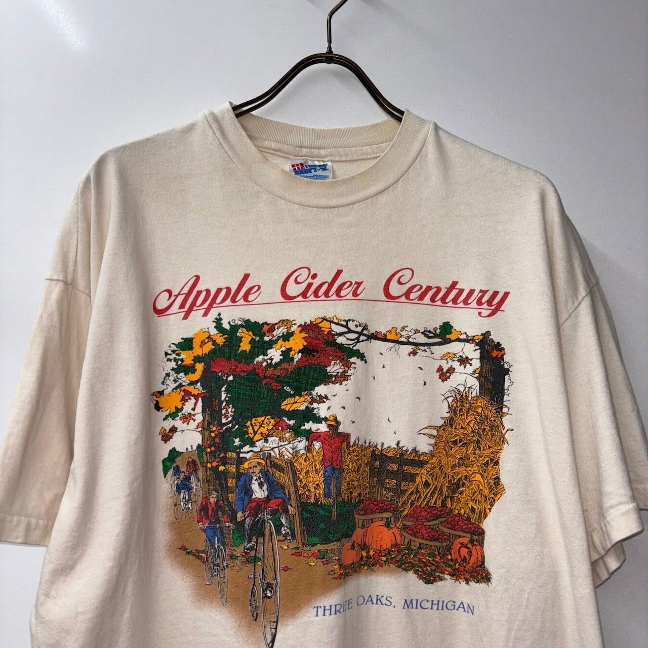 【USA製】Apple Cider Century 三段プリントTシャツ XL Hanes 秋風景 サイクリング