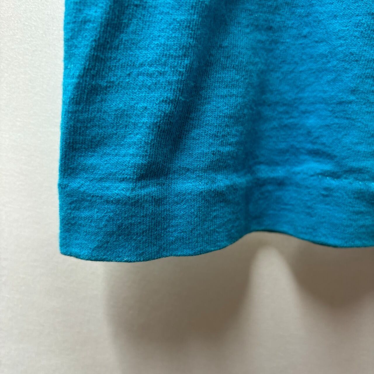 エネルギッシュなターコイズブルーのボディに、ロゴのブラック×ホワイト×オレンジのコントラストがよく映え、古着らしい存在感のある1枚。スポーツファンはもちろん、ストリートスタイルのアクセントとしてもおすすめです。