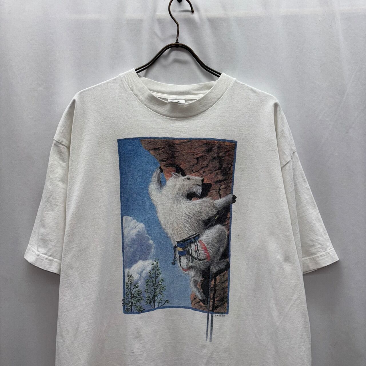 【USA製】90s Tee goat climbing rock-climbing ロッククライミング ヤギ アート art Tee