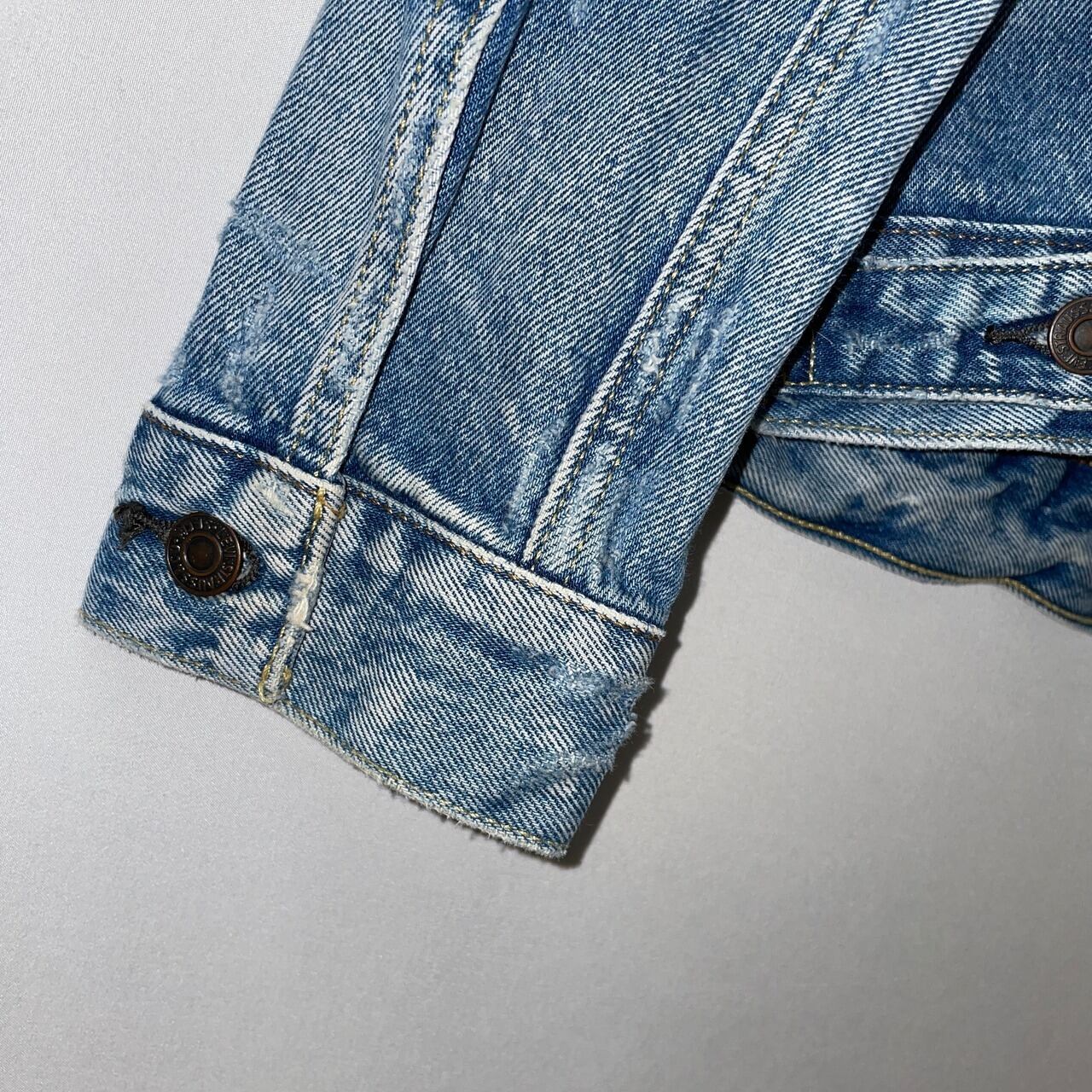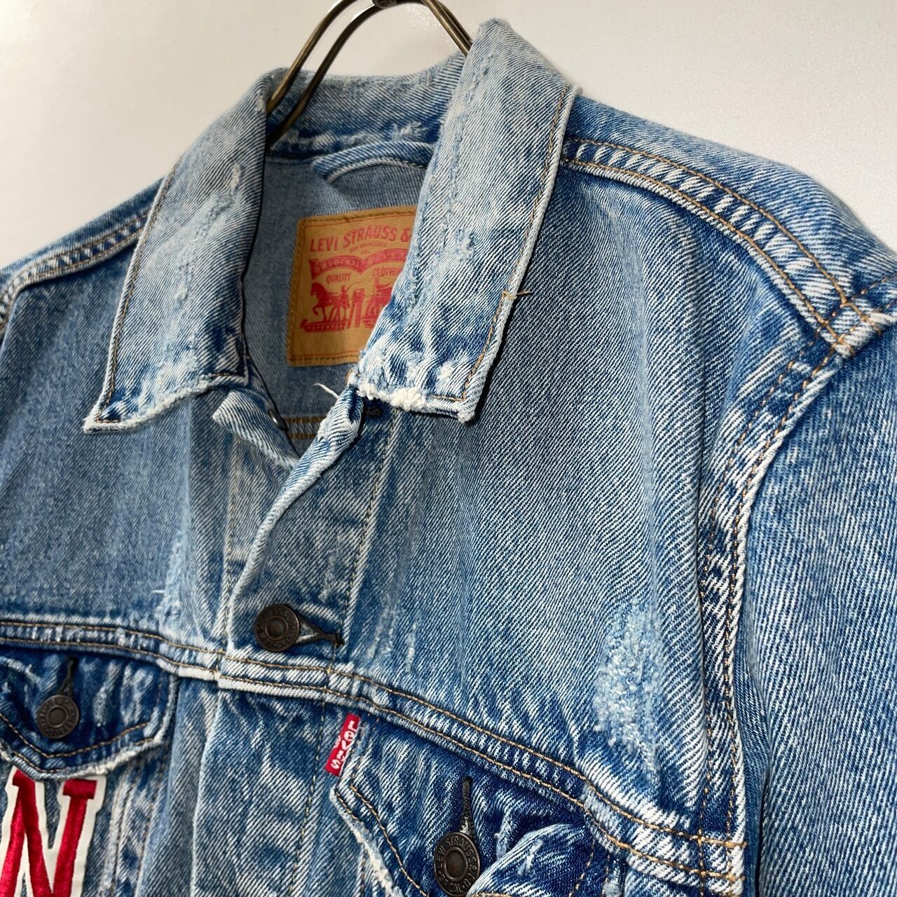 フロントに大胆な「N」ワッペン、全体にヴィンテージ感のあるウォッシュ加工が施されたLevi’sのデニムジャケット。