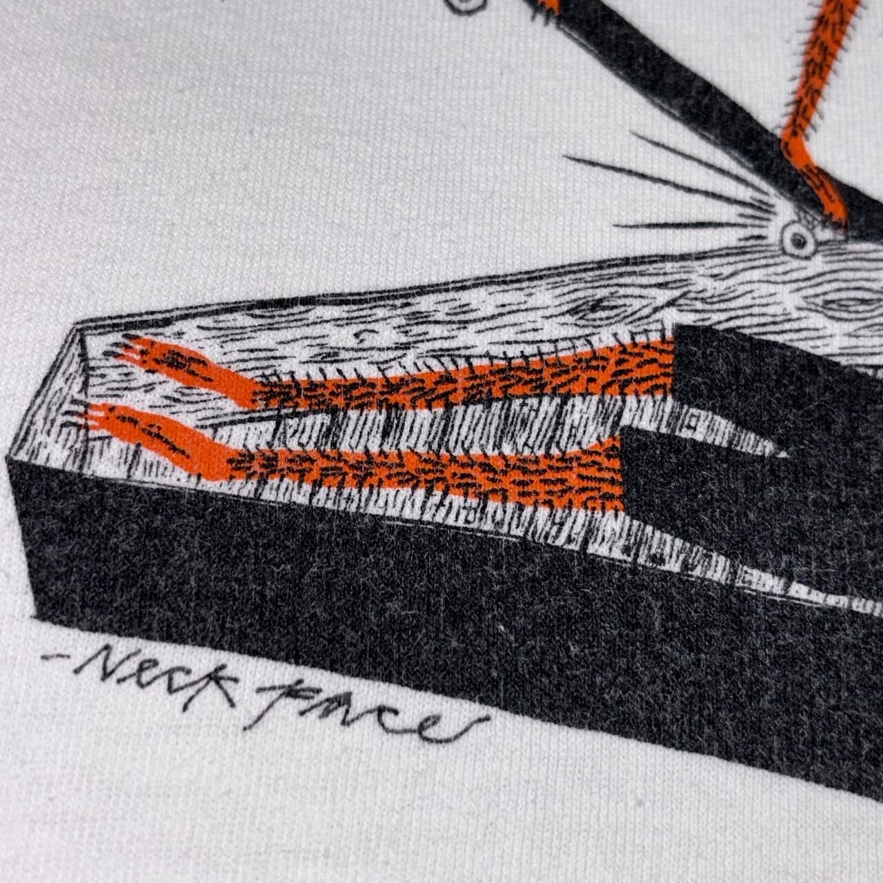 ストリートブランドらしい風刺とブラックユーモアを効かせたデザインで、着るだけで強いインパクトを放つ1枚です。