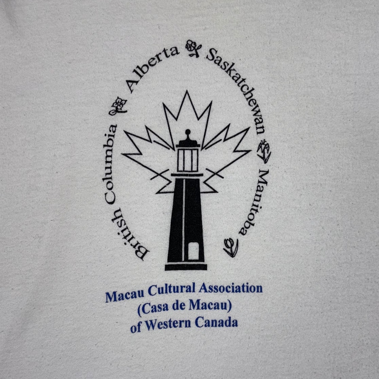 フロントに「Macau Cultural Association (Casa de Macau) of Western Canada」のプリントが入った一着。