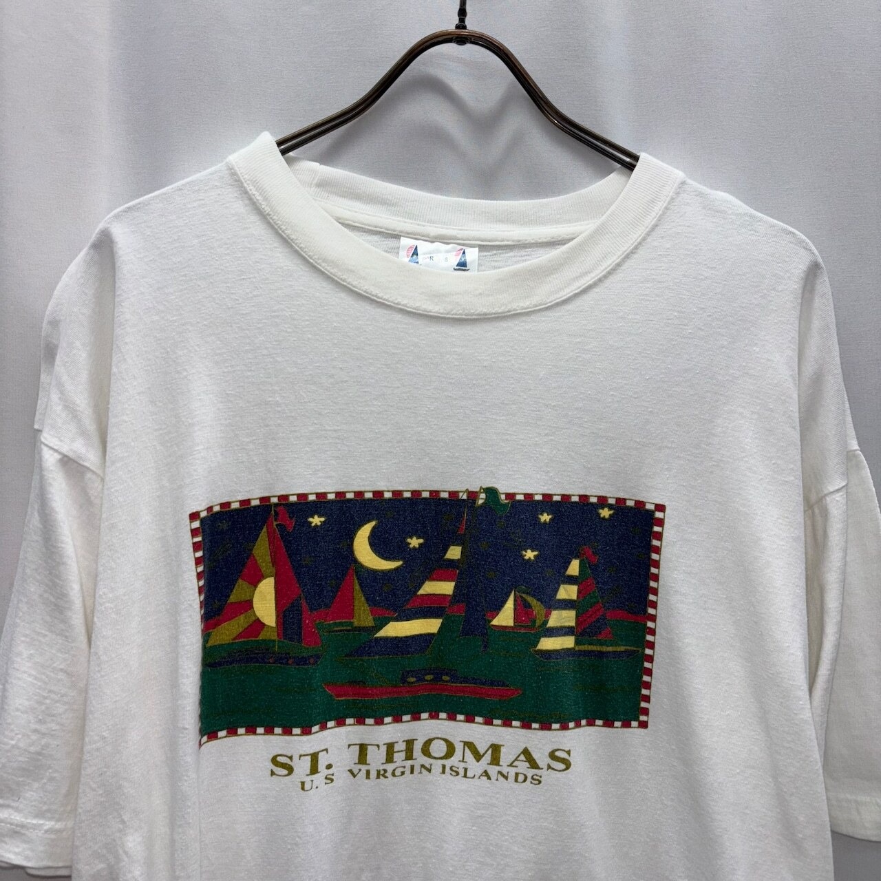 フロントに「ST. THOMAS U.S. VIRGIN ISLANDS」の文字と、月夜に浮かぶヨットを描いた印象的なプリント。