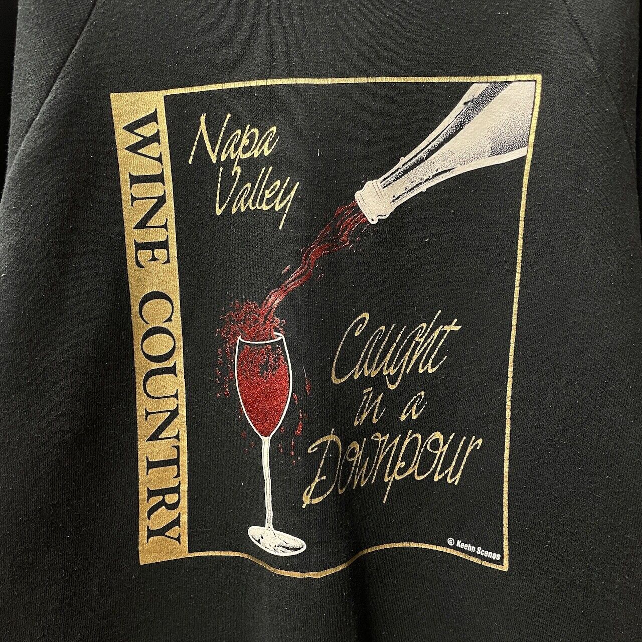 ワイングラスに注がれる赤ワインを大きく描いた、カリフォルニア州Napa Valley(ナパ・バレー)のスーベニアスウェット。