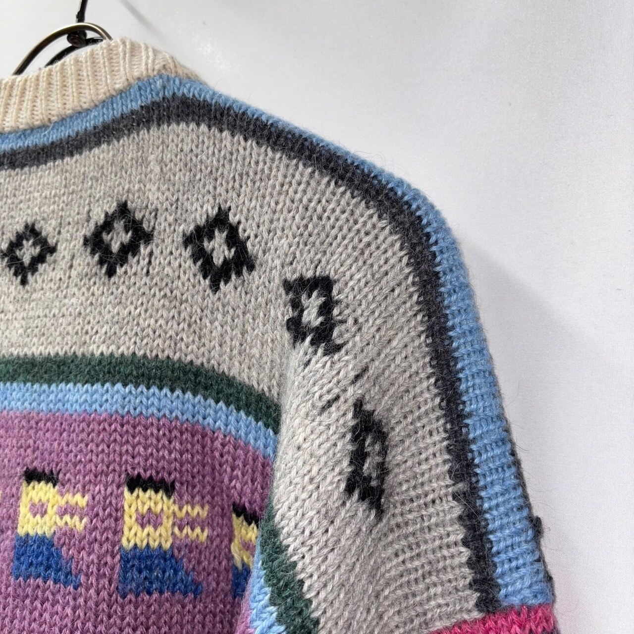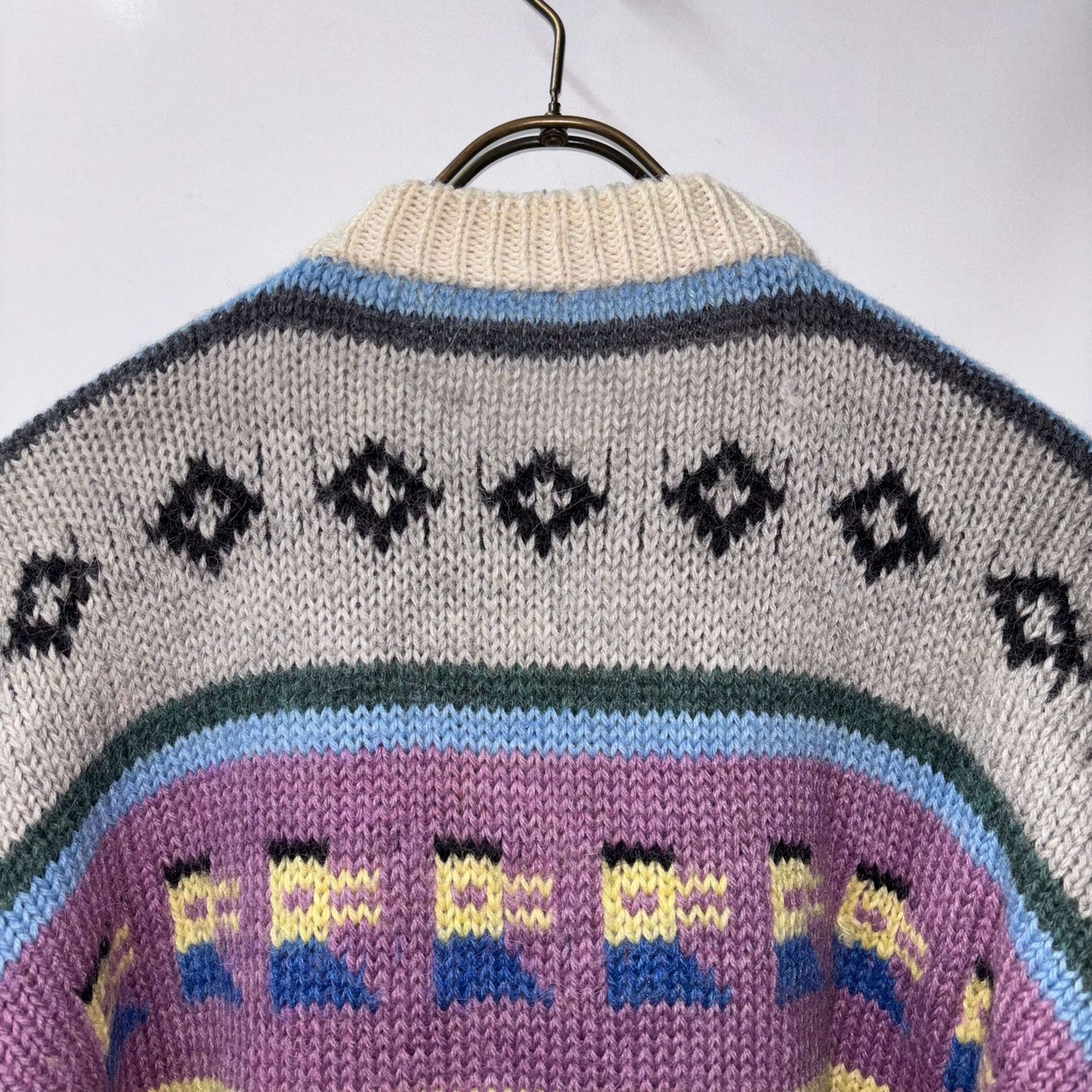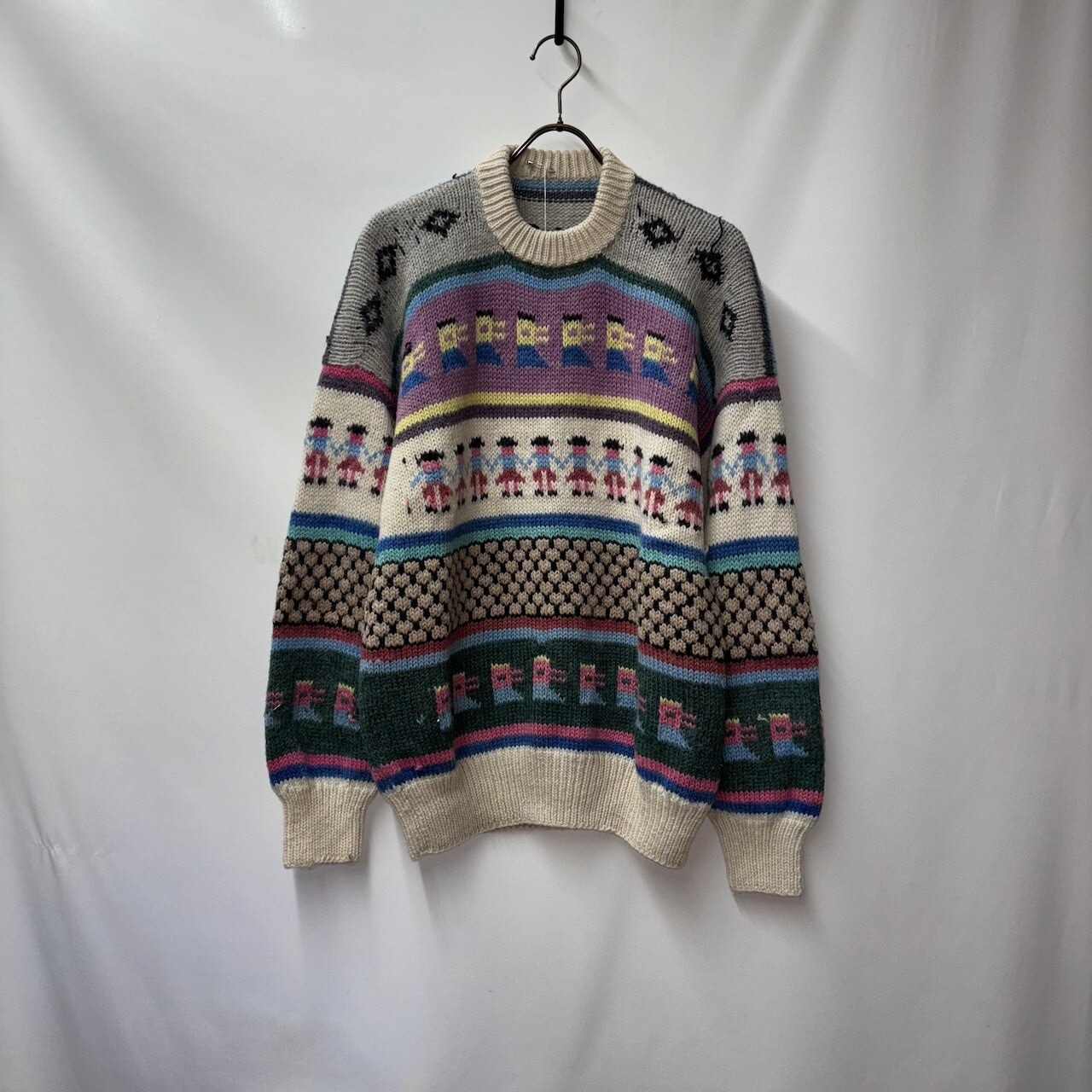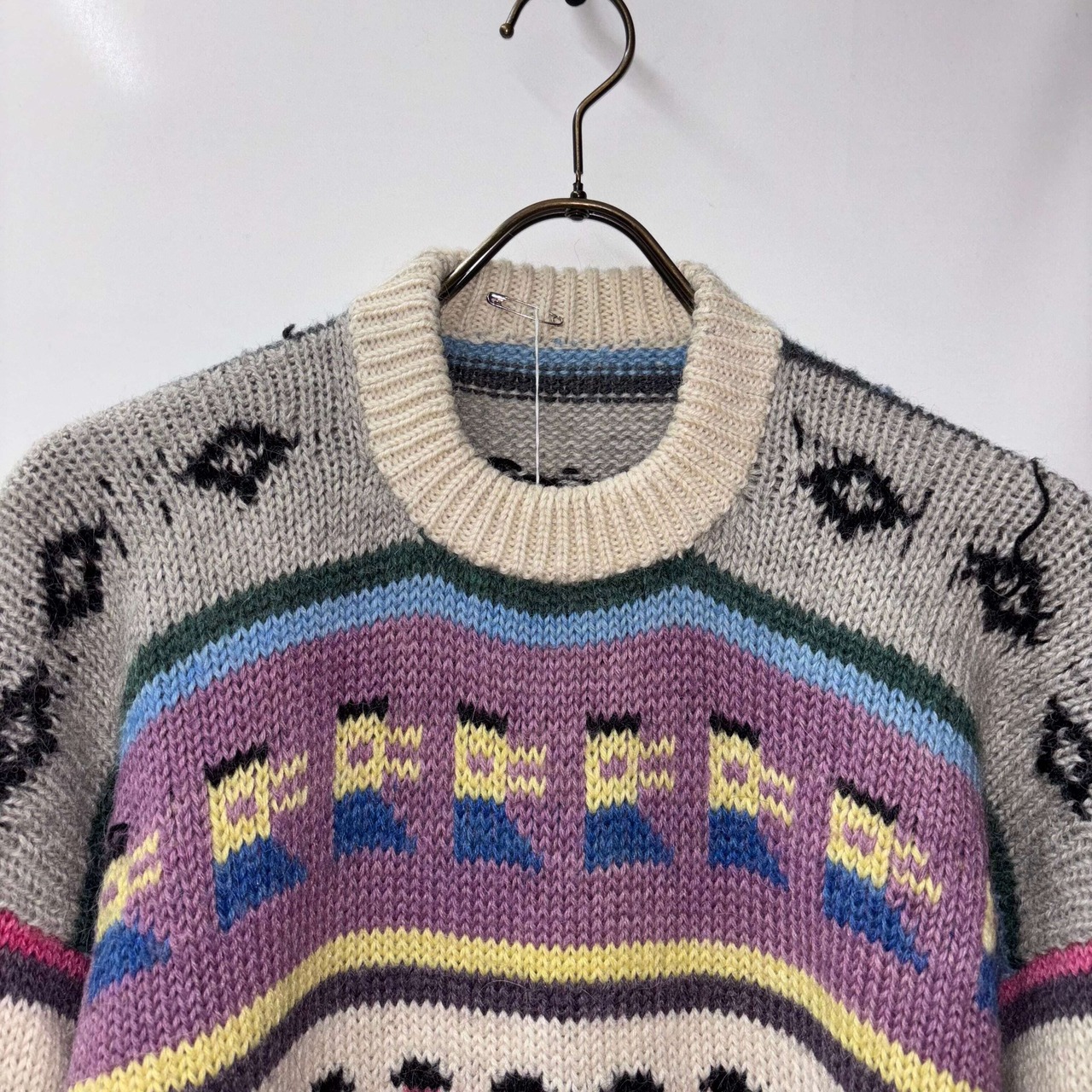 総柄ニット カラフル ウール 大きめ L〜XL