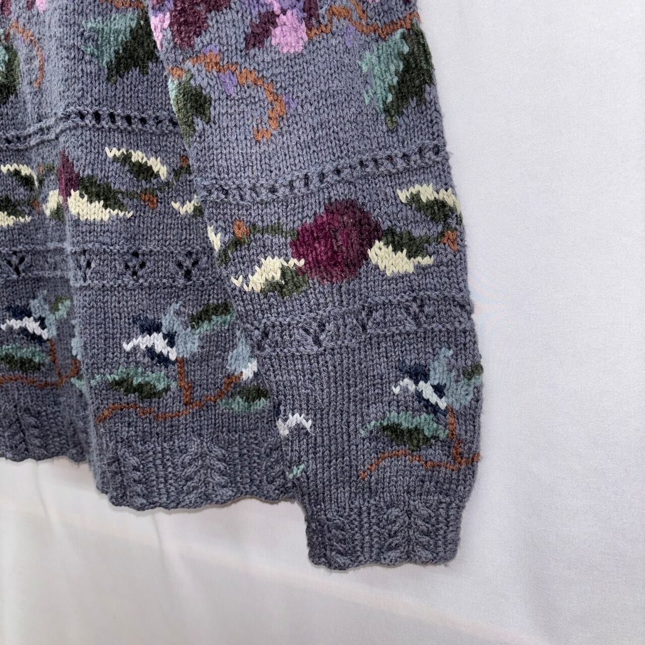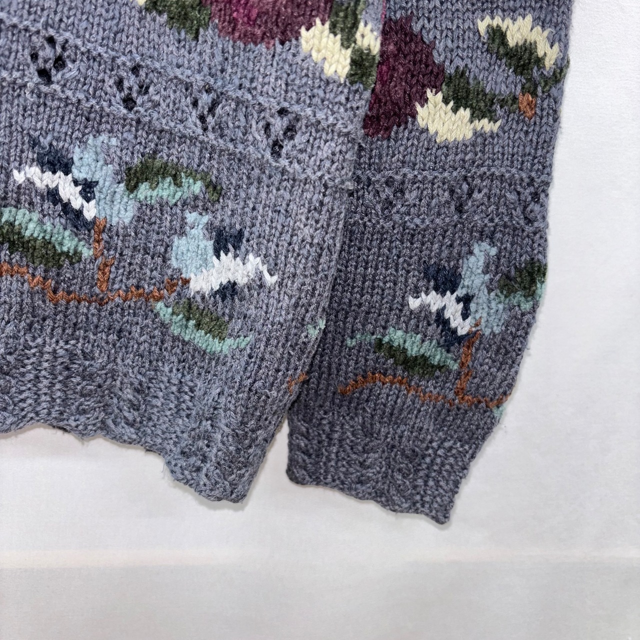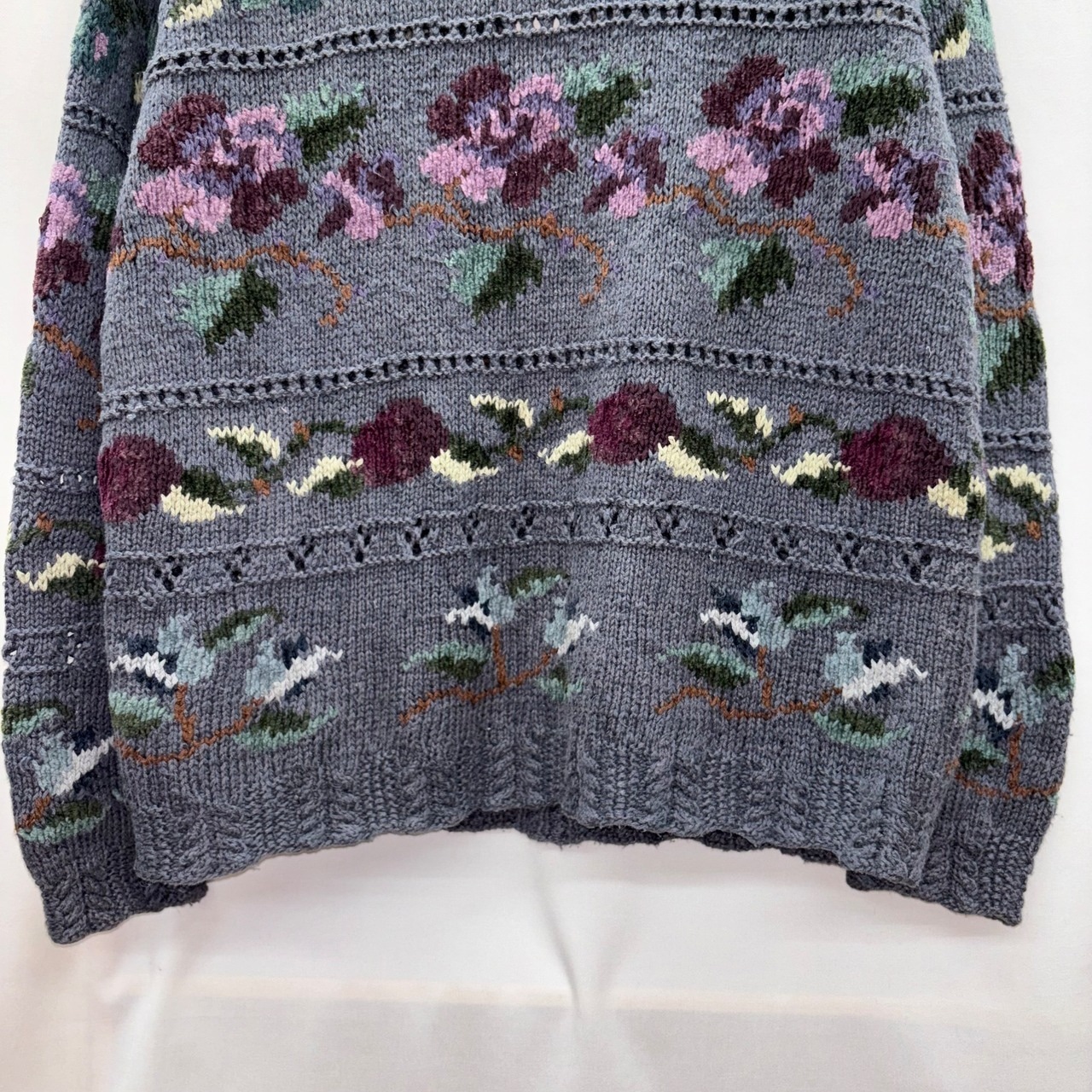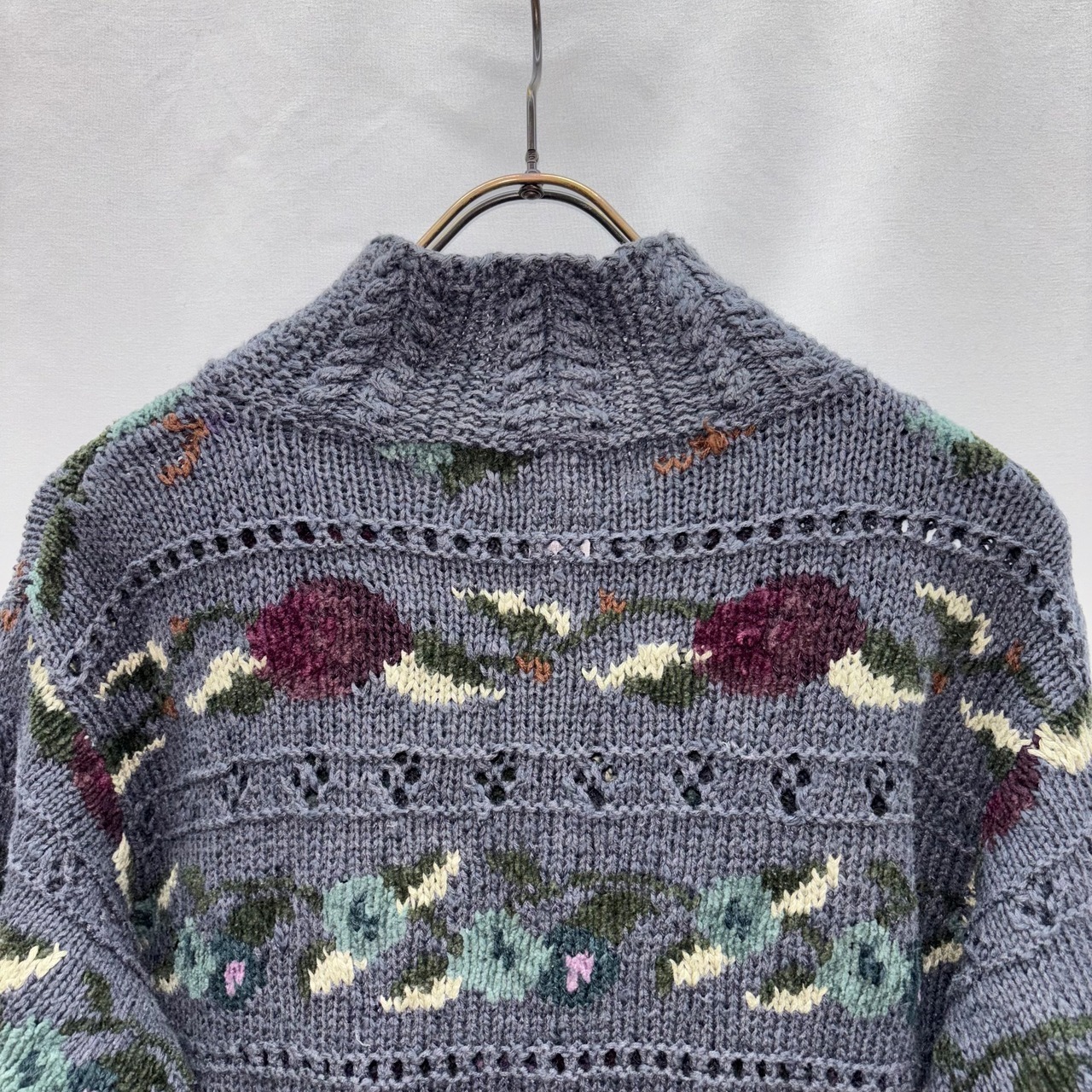 クラシカルなフラワーパターンが全面に編み込まれたハンドニットセーター。